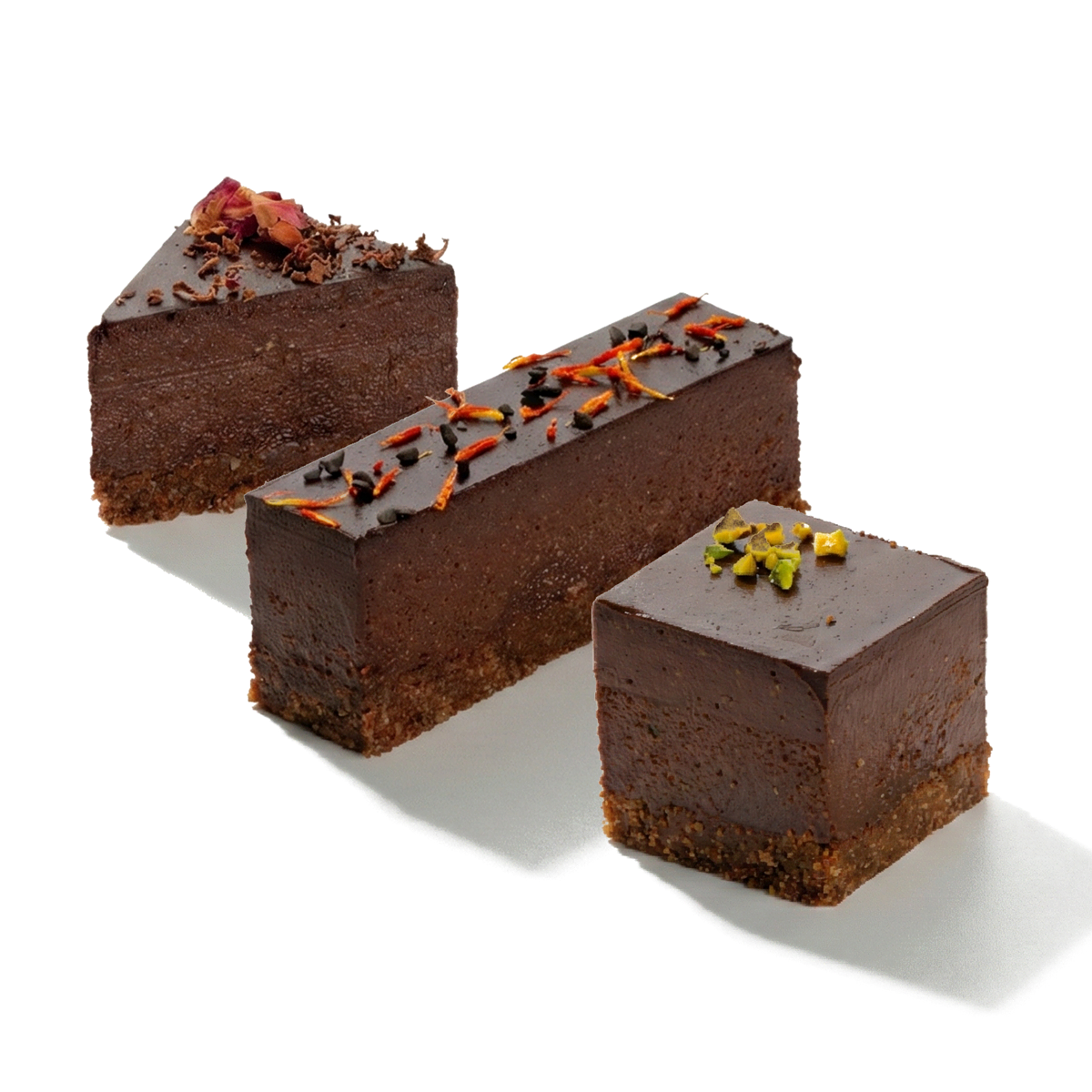 Egyedi formák és szeletméretek a prémium tányérdesszertekhez. Teljes kreatív szabadság egyetlen mentes, csokoládés alapban.